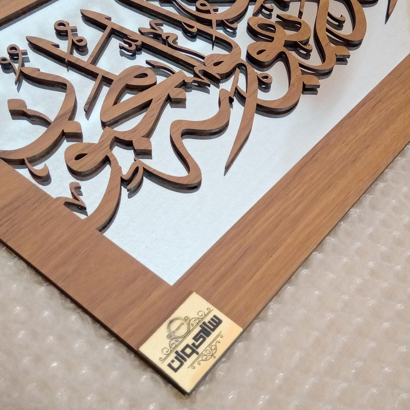 نصب آسان با یک میخ جنس قاب و نوشته ها از ام دی اف می باشد و آینه از جنس شیشه ای شفاف ۴ میلی متر