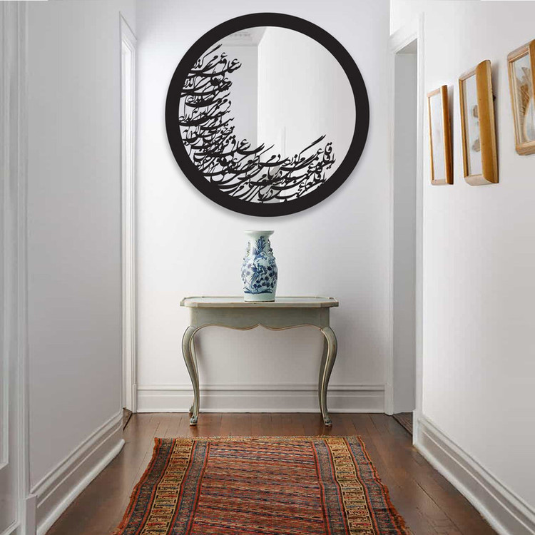 قاب و نوشتههای کار از جنس ام دی اف می باشد که بر روی آینه از جنس شیشه ای نصب شده است.