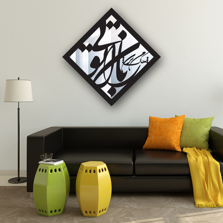 خط نستعلیق نشانهای بارز از طبع و سلیقه زیبایی شناختی ایرانیان است و بیشک زیباترین و ظریفترین خط در میان خطوط اسلامی است و قرار گرفتن آن در کنار آینه که از دیر باز در فرهنگ ایرانیان جایگاهی والا داشته لطافتش را دو چندان میکند. در اثر فوق ( باران تویی به خاک من بزن) بر روی ام دی اف برش خورده و روی آینه قرار داده شده است.